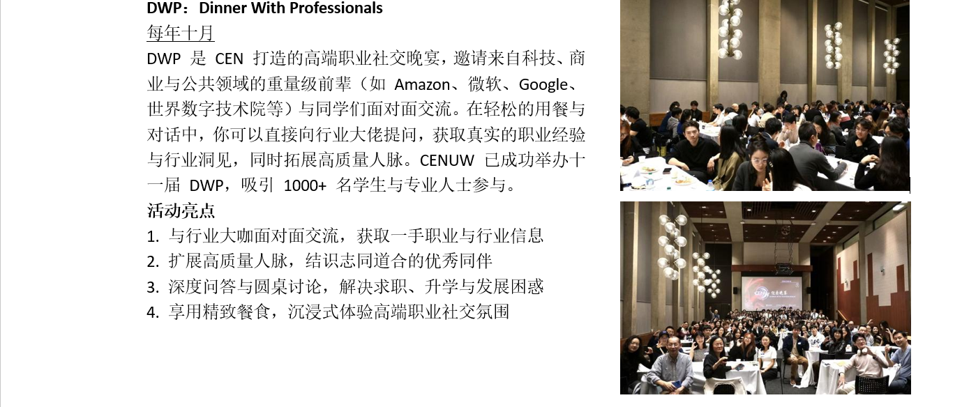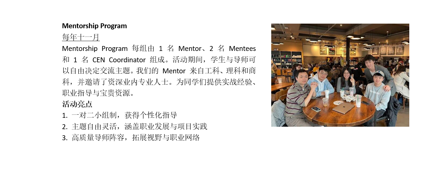- 成长与领导力: 拓展高质量社交圈; 提升领导力与执行力; 温暖有凝聚力的社团氛围